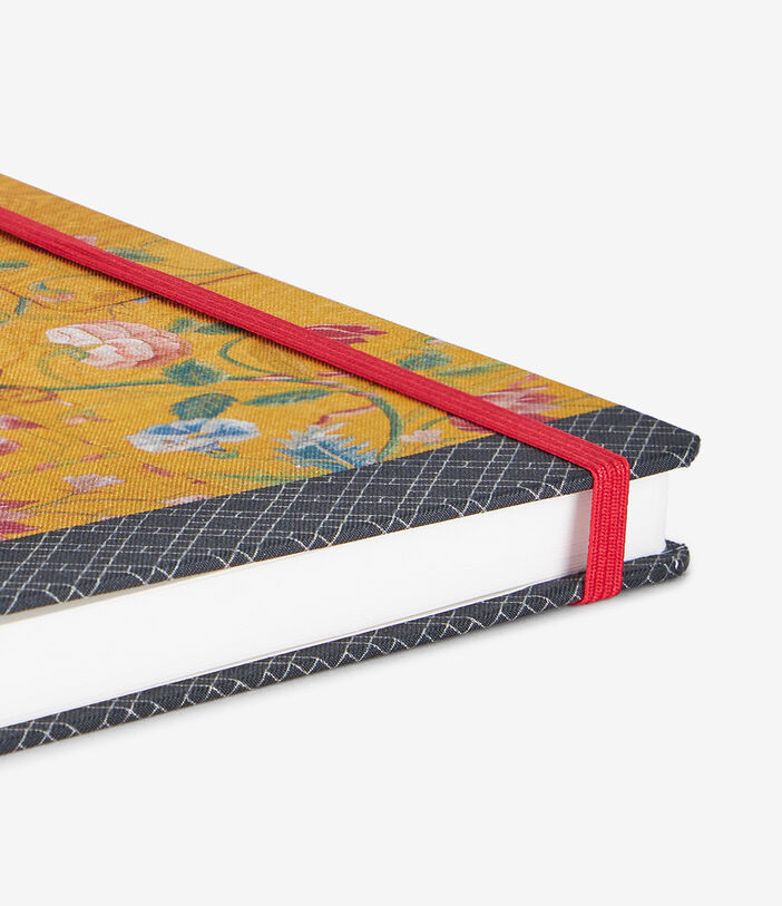 WRITPAD is a 21x30 cm silk-covered notebook, adorned with iconic Pierre-Louis Mascia archive prints—a kaleidoscope of floral, geometric and oriental motifs. The smooth silk cover hugs a sturdy structure, elegantly secured by a bold red elastic band. Each notebook comes in a matching printed box, making it a refined collectible or a perfect gift. Also available in a smaller 15x21 cm version.